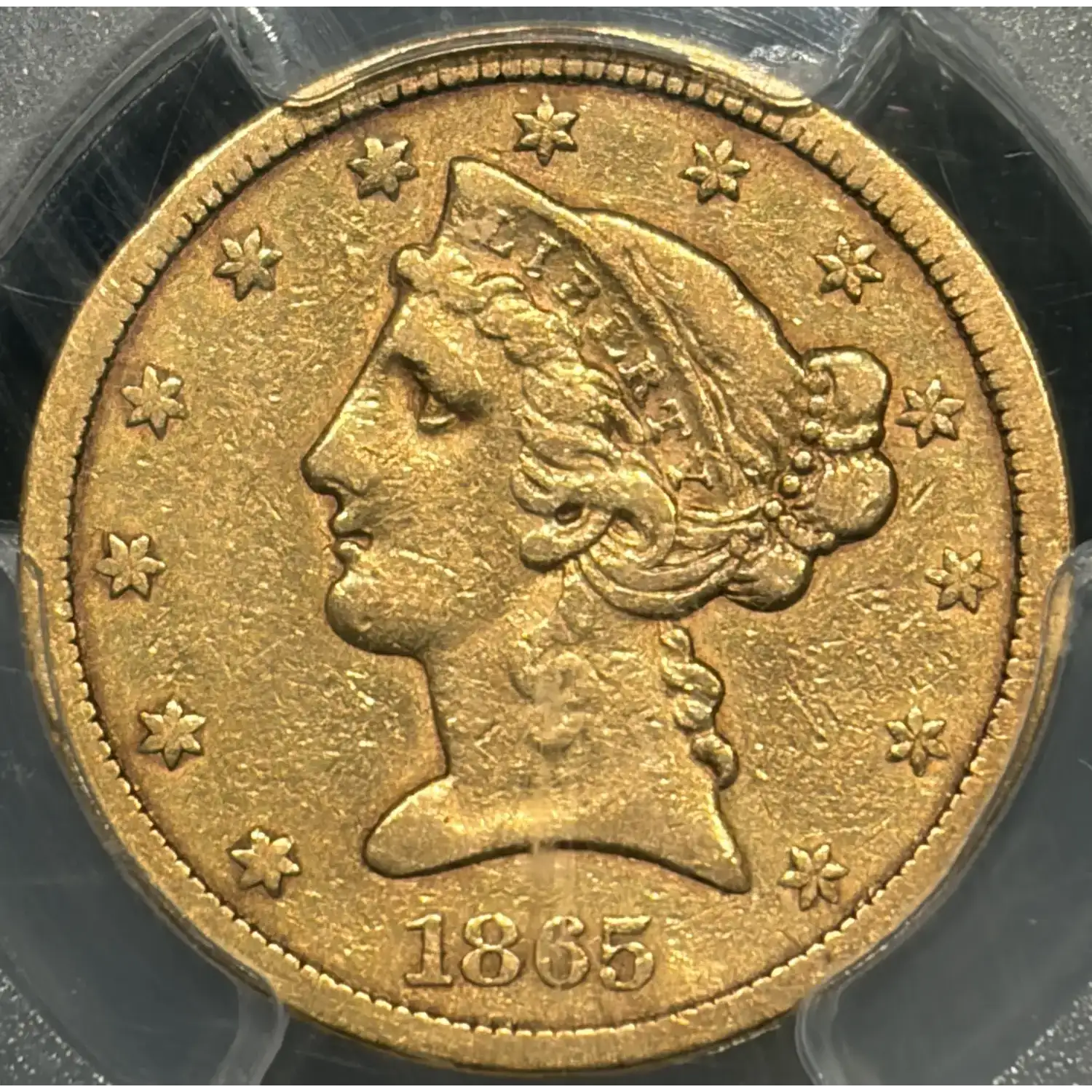 1865-S $5 GOLD LIBERTY HALF EAGLE PCGS VF35 - TOUGH CIVIL WAR DATE!