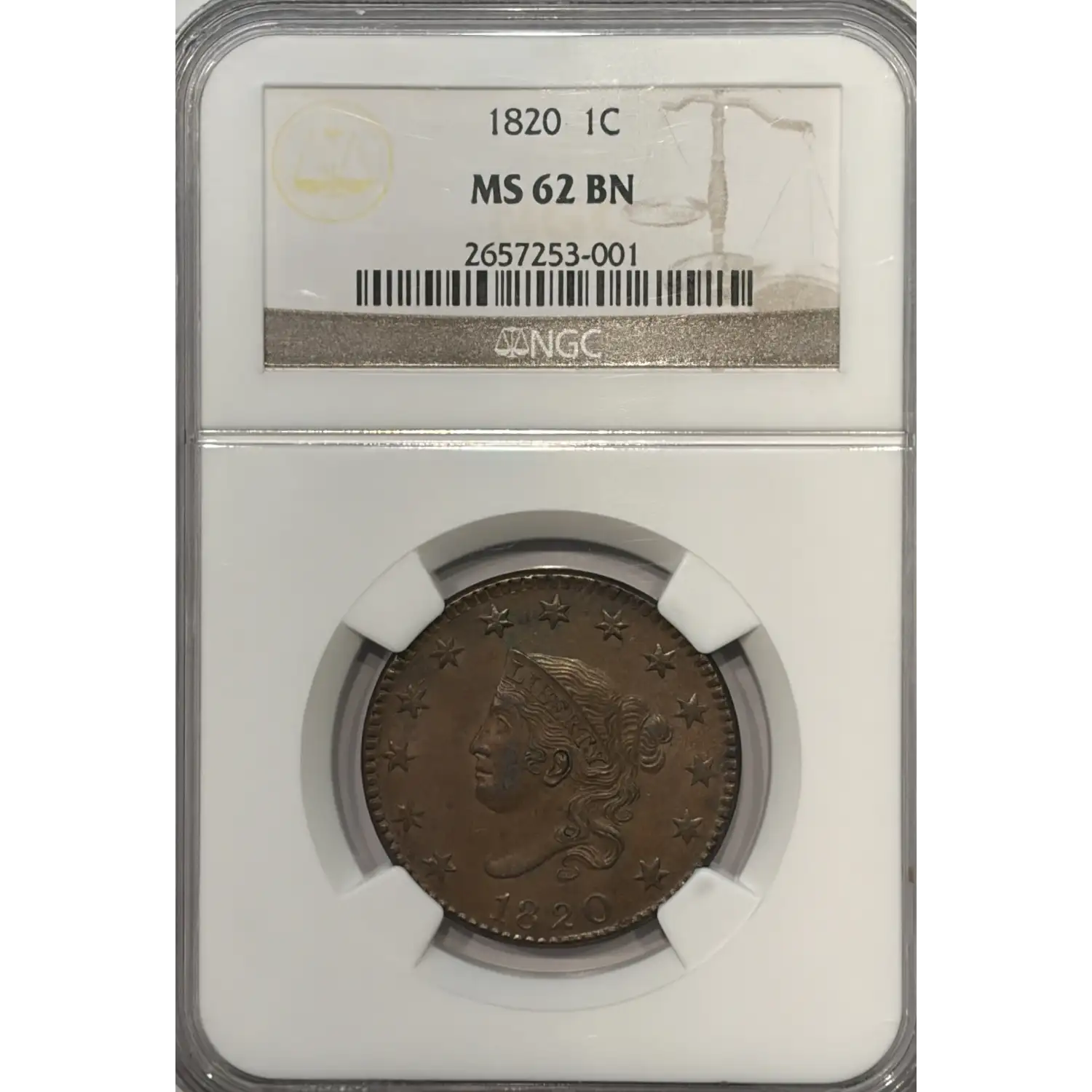 1820 Large Cents Coronet Head NGC MS-62 BN