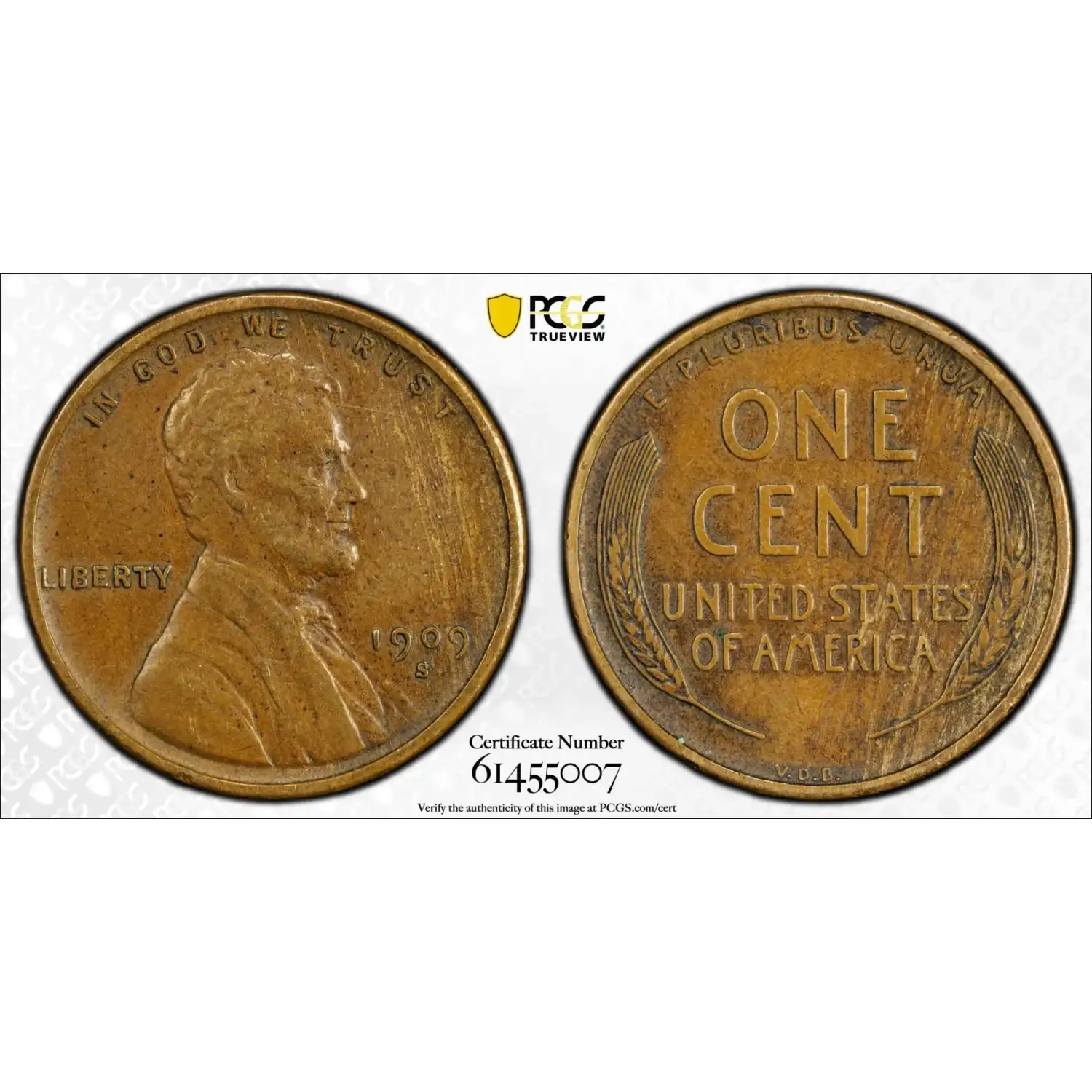 1909-S Small Cents Lincoln, Wheat Ears Reverse PCGS XF-45 BN
