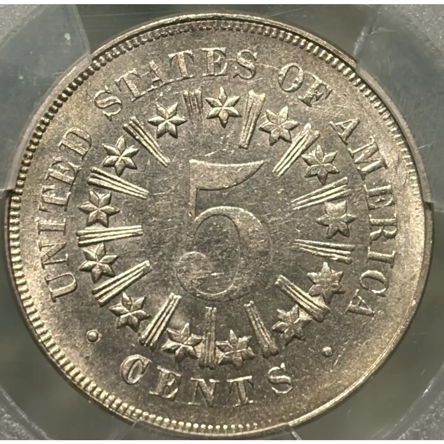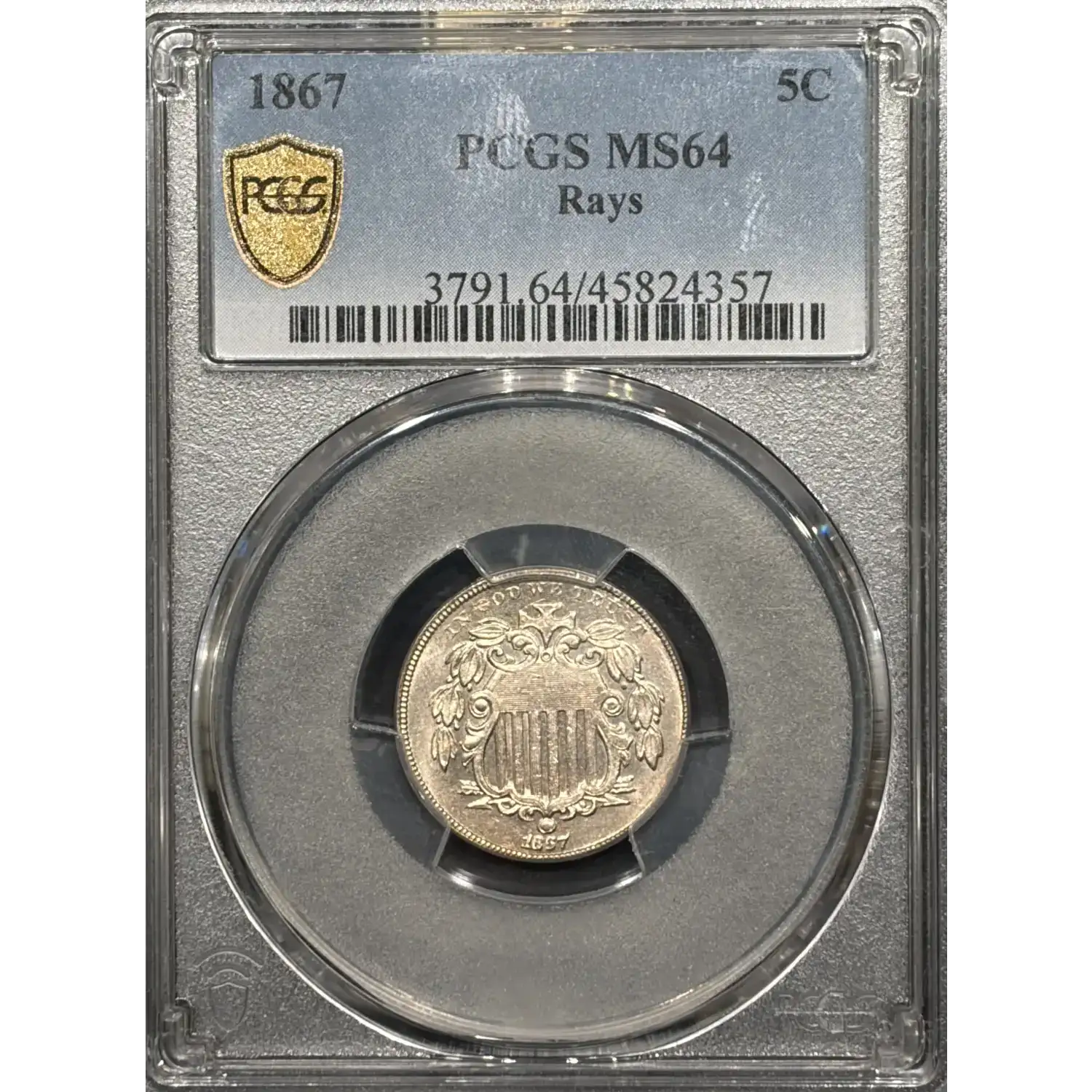 1867 RAYS SHIELD NICKEL RAYS PCGS MS64