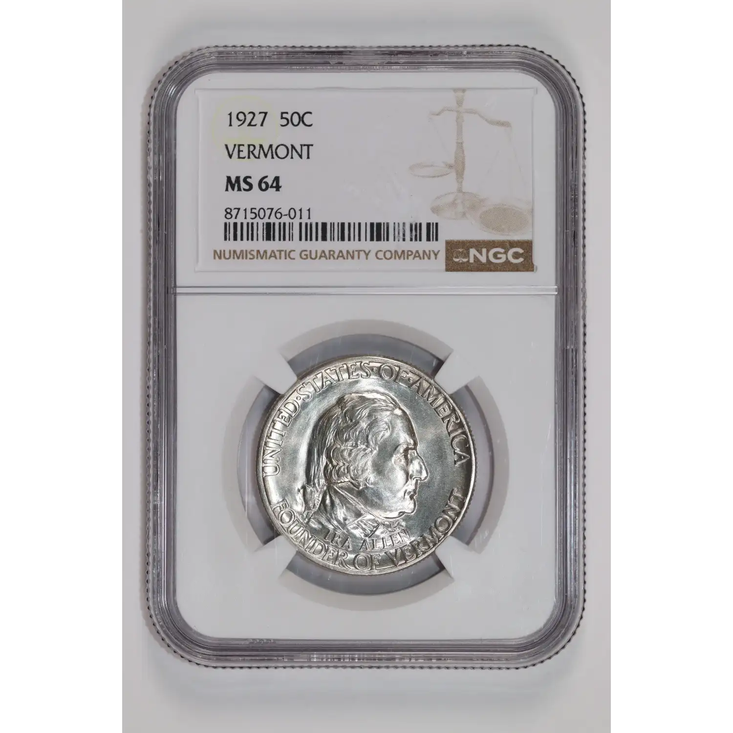 1927 Classic Commemorative Vermont Sesquicentennial NGC MS-64 VERMONT