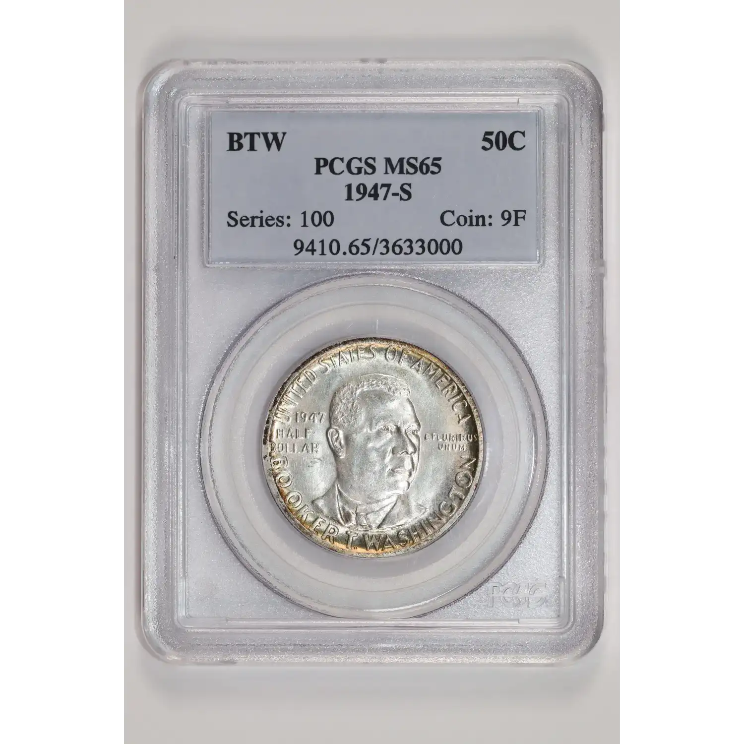 1947-S BOOKER T WASHINGTON COMMEMORATIVE HALF DOLLAR PCGS MS65 ORIGINAL PQ!