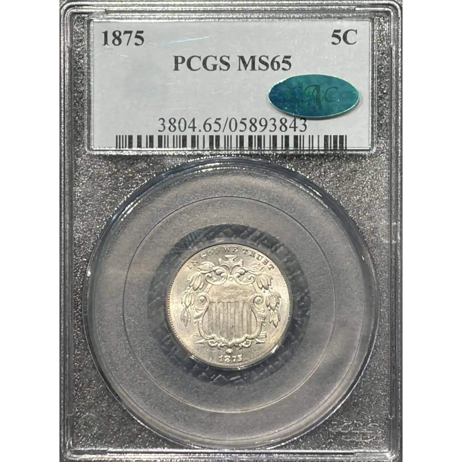 1875 SHIELD NICKEL PCGS MS65 CAC - VERY PQ!