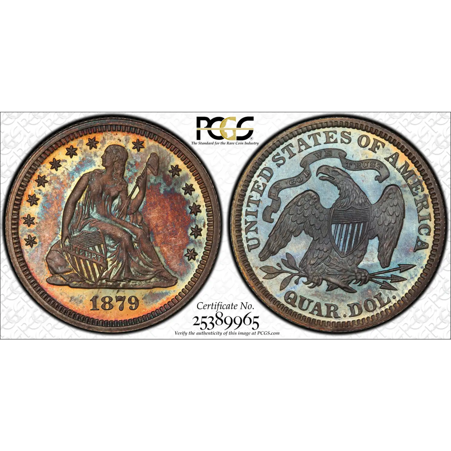 1879 PROOF SEATED LIBERTY QUARTER PCGS PR65 CAC