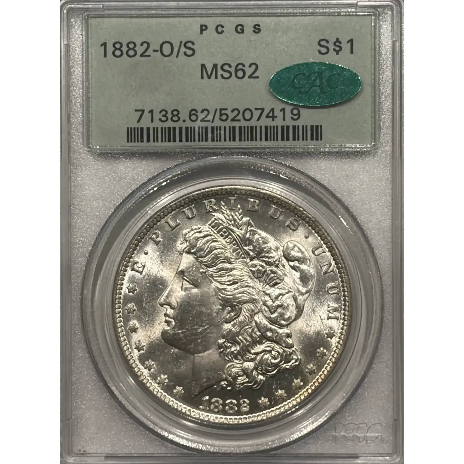 1882-O/S MORGAN DOLLAR PCGS MS62 CAC OGH