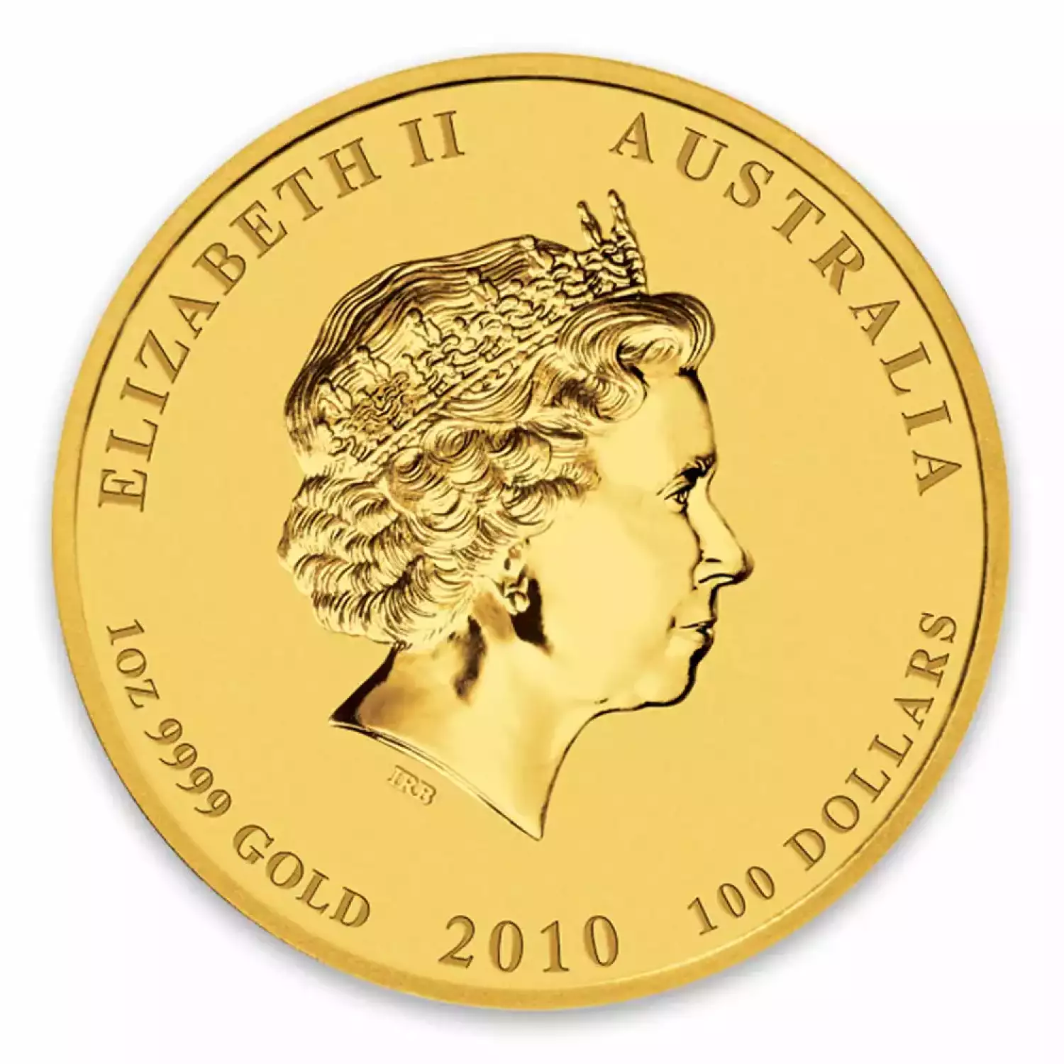 The 2010 1 oz Australian Perth Mint Gold Lunar II: Year of the Tiger was struck by the Perth Mint in the Year 2010 and has a mintage of only 3,000 coins. The Obverse displays a right-facing profile of Queen Elizabeth II and the Reverse showcases the Gold Lunar Tiger design.