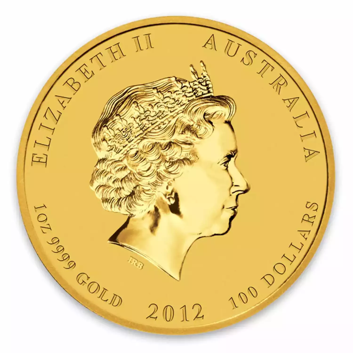 Each 2012 1 oz Australian Perth Mint Gold Lunar II: Year of the Dragon contains 1 oz of .9999 fine gold. The Obverse of the coin features the effigy of Queen Elizabeth II, designed by the talented Ian Rank-Broadley. The Reverse portrays the beautiful "Year of the Dragon" design.