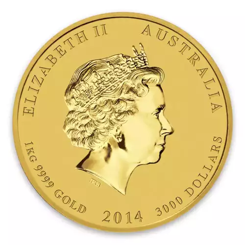 Each 2014 1kg Australian Perth Mint Gold Lunar II: Year of the Horse coin is stamped with its 32.15 oz and .999 gold purity. This bullion coin is guaranteed by the Australian government for its weight, high-quality minting and pure gold content.