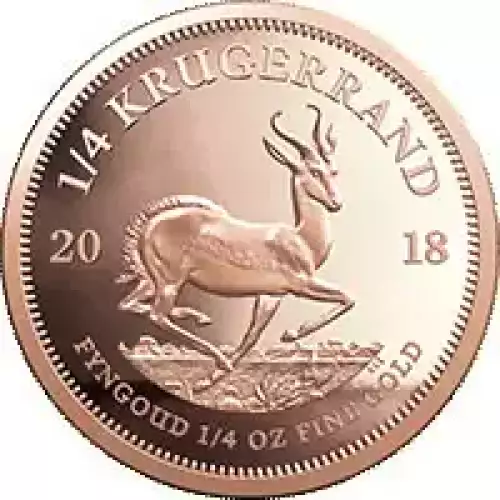 The obverse of the 1/4oz South African Gold Krugerrand features the South African Republic’s first president, Paul Kruger. The reverse of the gold coin depicts South Africa’s symbol, the Springbok Gazelle.