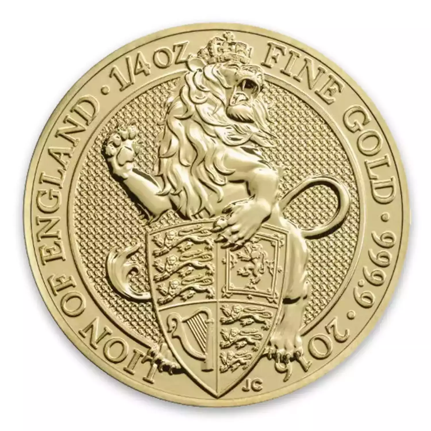 The Britain Queen's Beasts celebrate the British Monarch and the centuries of fascinating heraldry. This gold coin contains 1/4 oz of .9999 fine Gold.