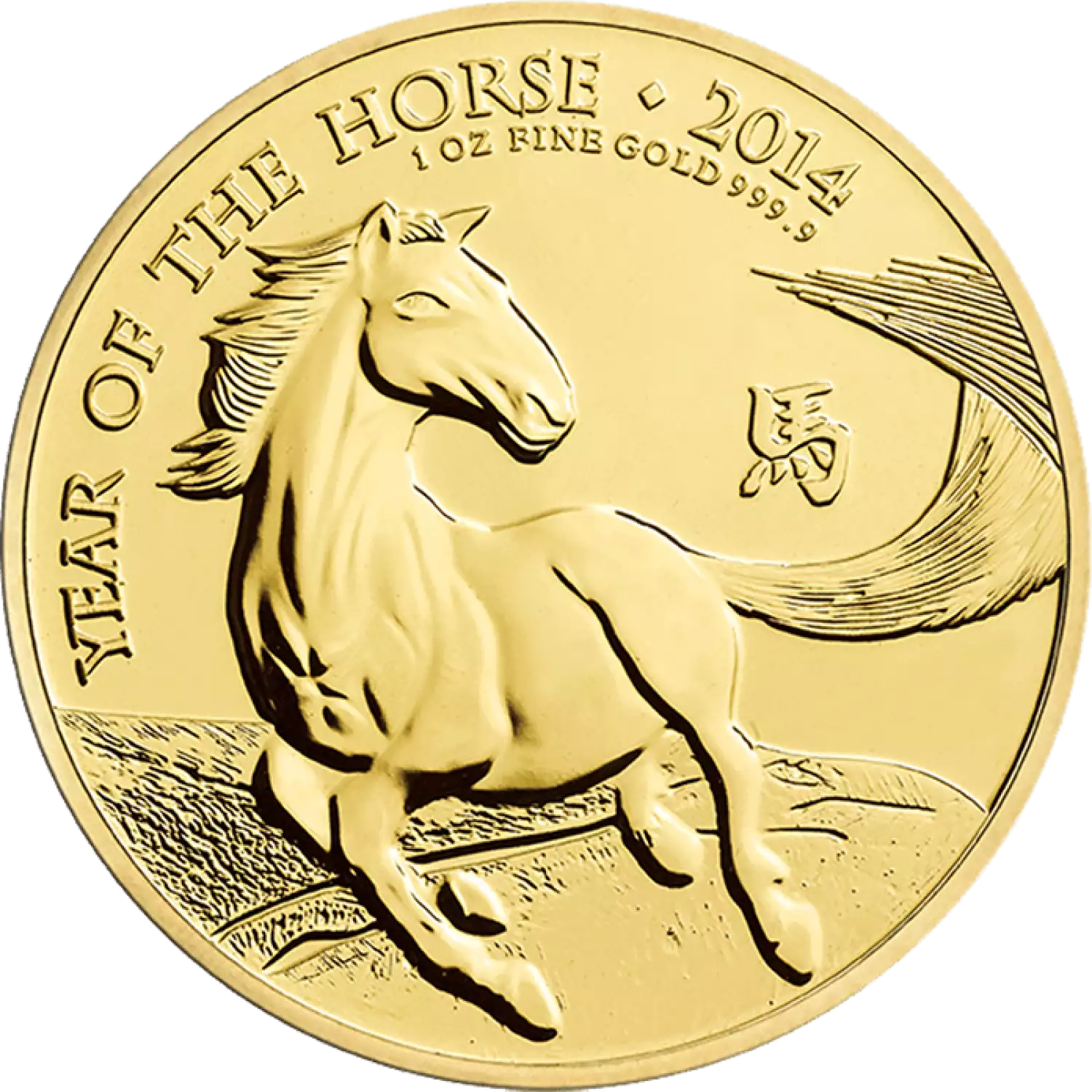 The 1 oz 2014 British Lunar Series: Year of the Horse contains 1 troy ounce of .9999 fine gold. This gold coin has an iconic design desired by many gold investors.